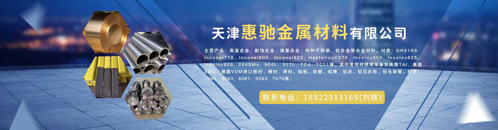 天津惠馳金屬材料有限公司是一家服務于金屬材料的專業(yè)公司。公司秉承著“專業(yè)、誠信、值得信賴”的經營理念,致力合金產品領域提供一流的產品同服務。我們多年的經驗同積累,我們的專業(yè)和不斷地創(chuàng)新,我們的誠信和優(yōu)質服務, 得到了各行業(yè)客戶的一致肯定和好評,為企業(yè)贏得了卓越商譽。 ??